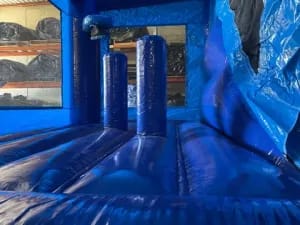 Our Blue Backyard Combo Jumping Castle features a variety of different obstacles and activities. The Backyard combo Jumping Castle, deliver maximum fun while using up minimal space! With its mesh wall front, this castle provides easy viewing for parents and lots of air flow on hot days.