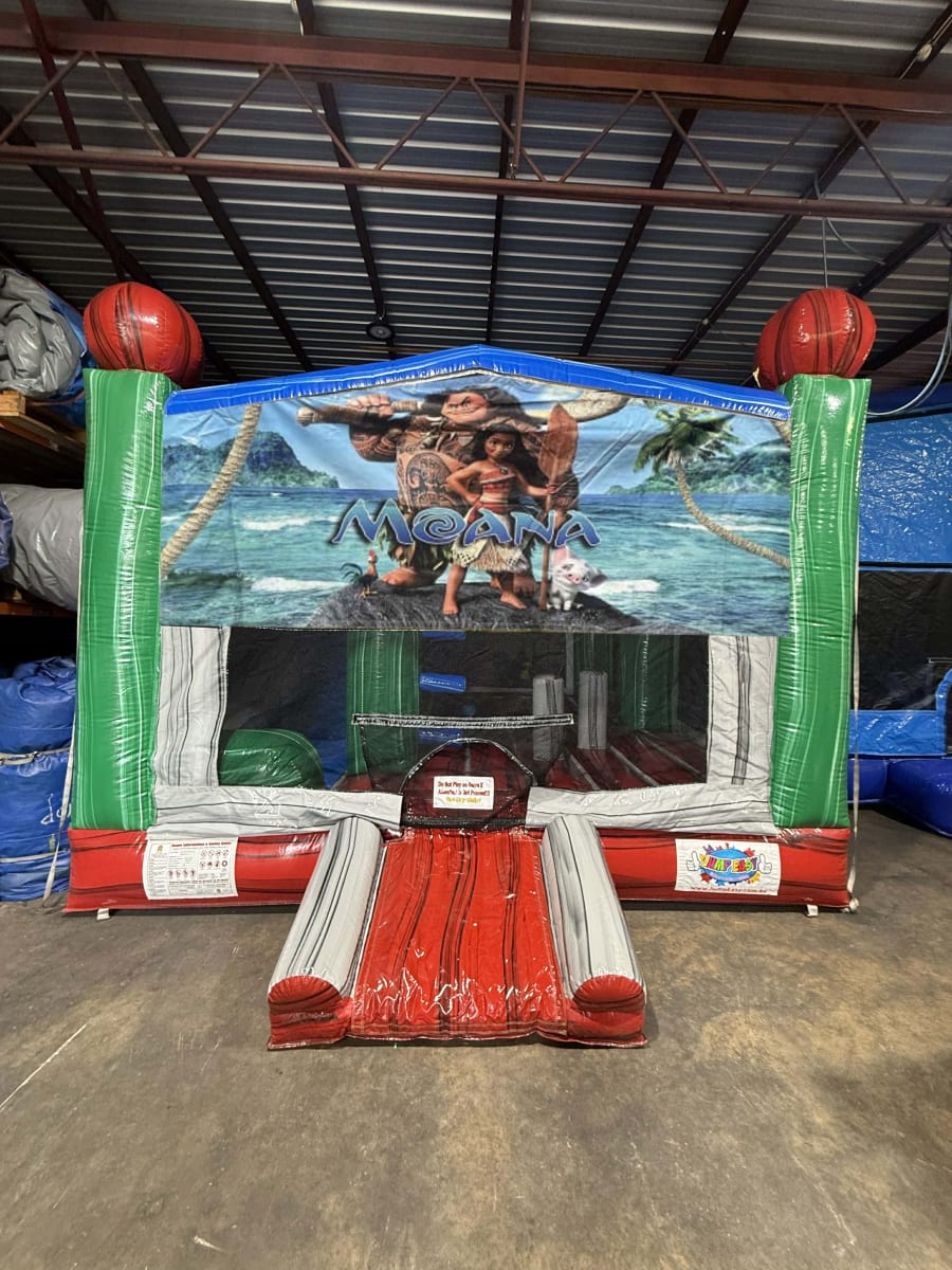 Features: Bounce area, inflated wall, inflated obstacles, stair climb, tall slide and basketball ring*.