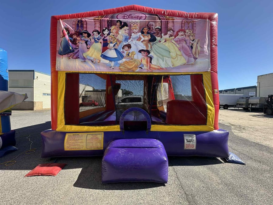Features: bounce area, stair climb, a slide and a basketball ring*.
