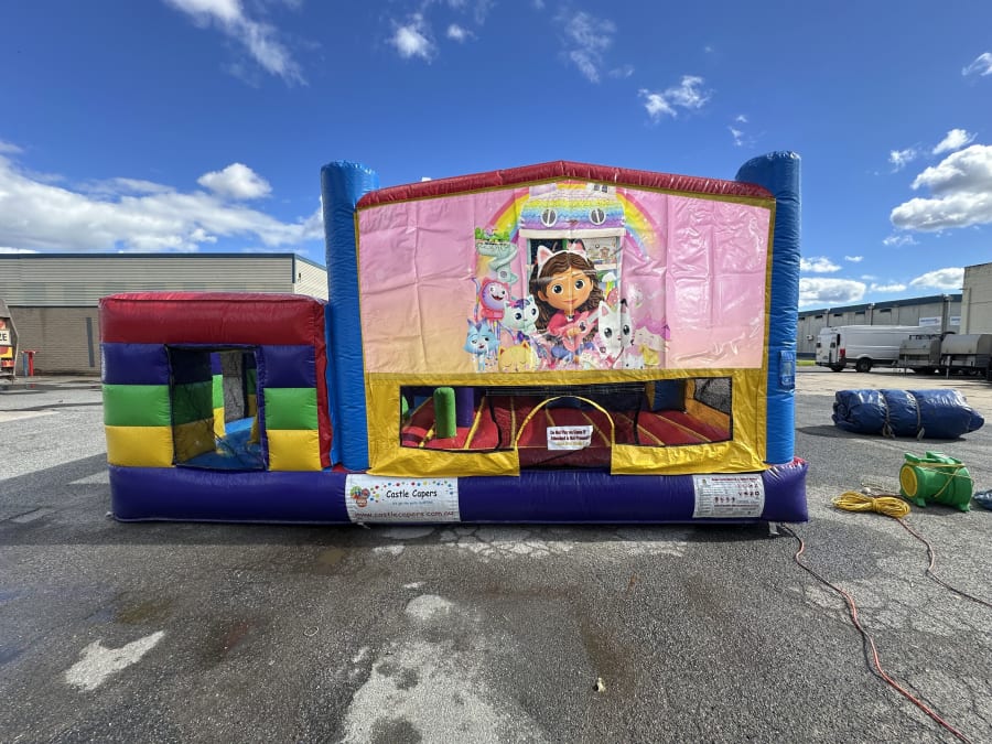 Our Gabby Dollhouse Multi Challenge Combo is the ultimate inflatable for kids who want it all—action, adventure and non-stop fun. The perfect addition to any Gabby Dollhouse themed party!