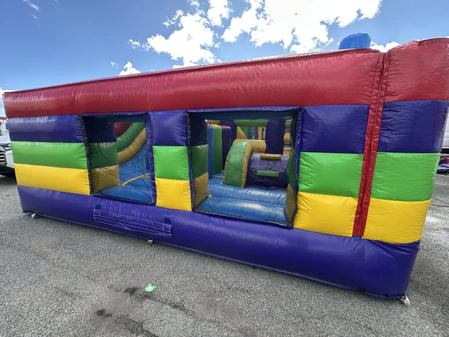 The Multi Challenge Combo is perfect for larger backyards, ovals and open spaces. It’s one of our biggest banner-style castles and delivers serious WOW factor from the moment it’s inflated
