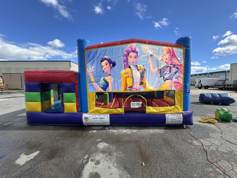 Our K-Pop Demon Hunters themed Multi Challenge Combo is the ultimate inflatable for kids who want it all—action, adventure and non-stop fun. The perfect addition to any K-Pop Demon Hunters themed party!