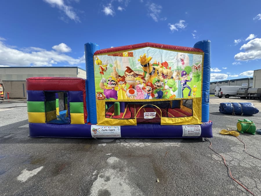 Our Super Mario themed Multi Challenge Combo is the ultimate inflatable for kids who want it all—action, adventure and non-stop fun. The perfect addition to any Super Mario themed party!