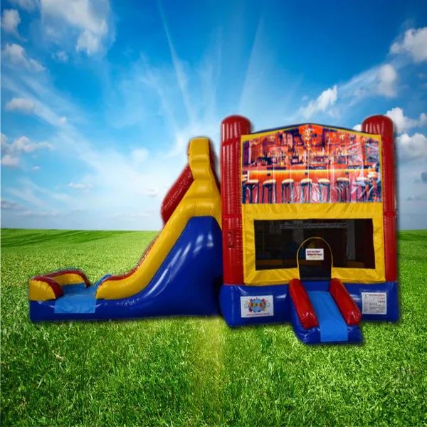 Features: bounce area, stair climb, slide, basketball ring*. Available in: 50+ themes, From Avengers to Frozen and anything in between (All themes shown on Jump Easy are available for hire on all banner castles) Suitable for: 8-10 kids of up to 12 years of age. Maximum Individual rider weight is 82kg.