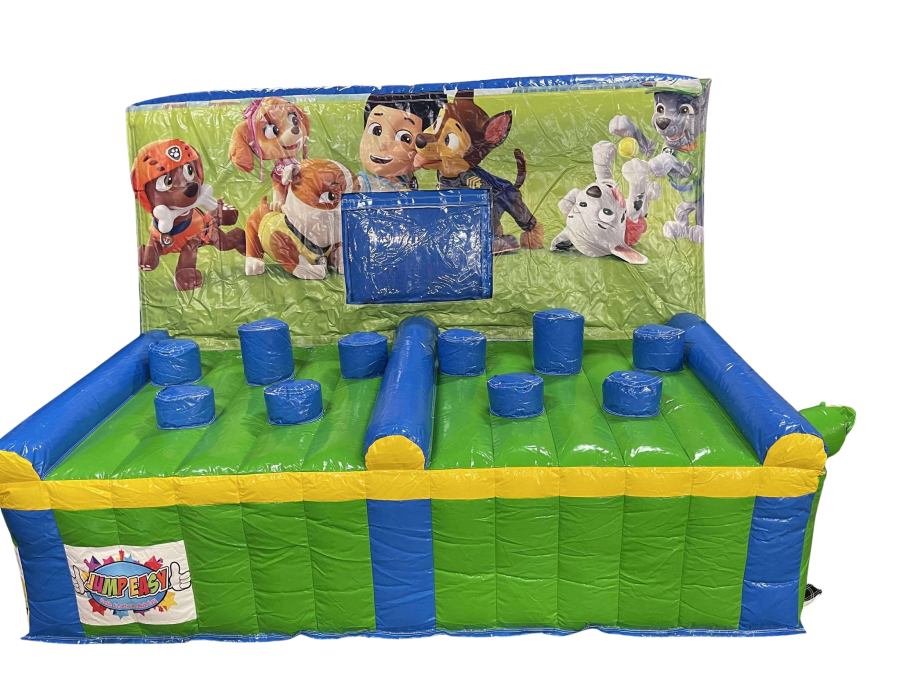 Just like whack-a-mole… but way better! Paw Patrol Zap! is a custom-built inflatable that combines our IPS system with fast-paced fun. Players score points by hitting LED sensors with their hands and seeing who wins!