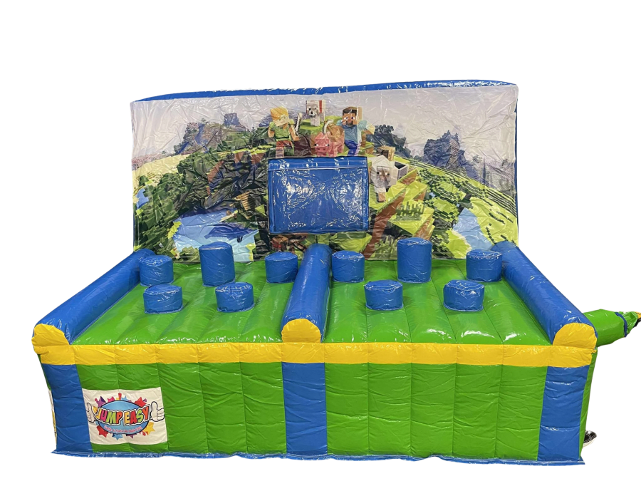 Just like whack-a-mole… but way better! Minecraft Creeper Zap! is a custom-built inflatable that combines our IPS system with fast-paced fun. Players score points by hitting LED sensors with their hands and seeing who wins!