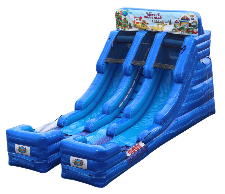 New to 2026 Christmas Dual Lane Water Slide! This massive inflatable is definitely a standout piece at your next party or event! Water Slides are one of our most popular items, they always provide a tonne of fun for everyone, no matter the age! This Water Slide is a great size for all those summer Backyard parties.