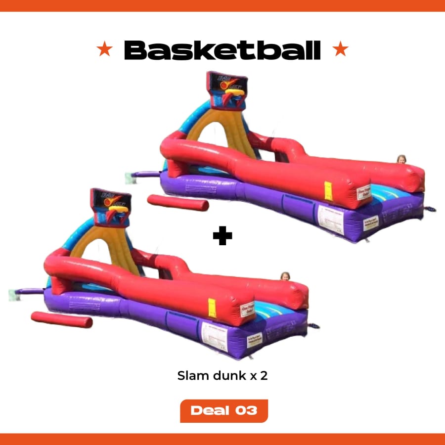 – 🏀 2 x Slam Dunk Stations – dual-lane basketball-themed inflatables